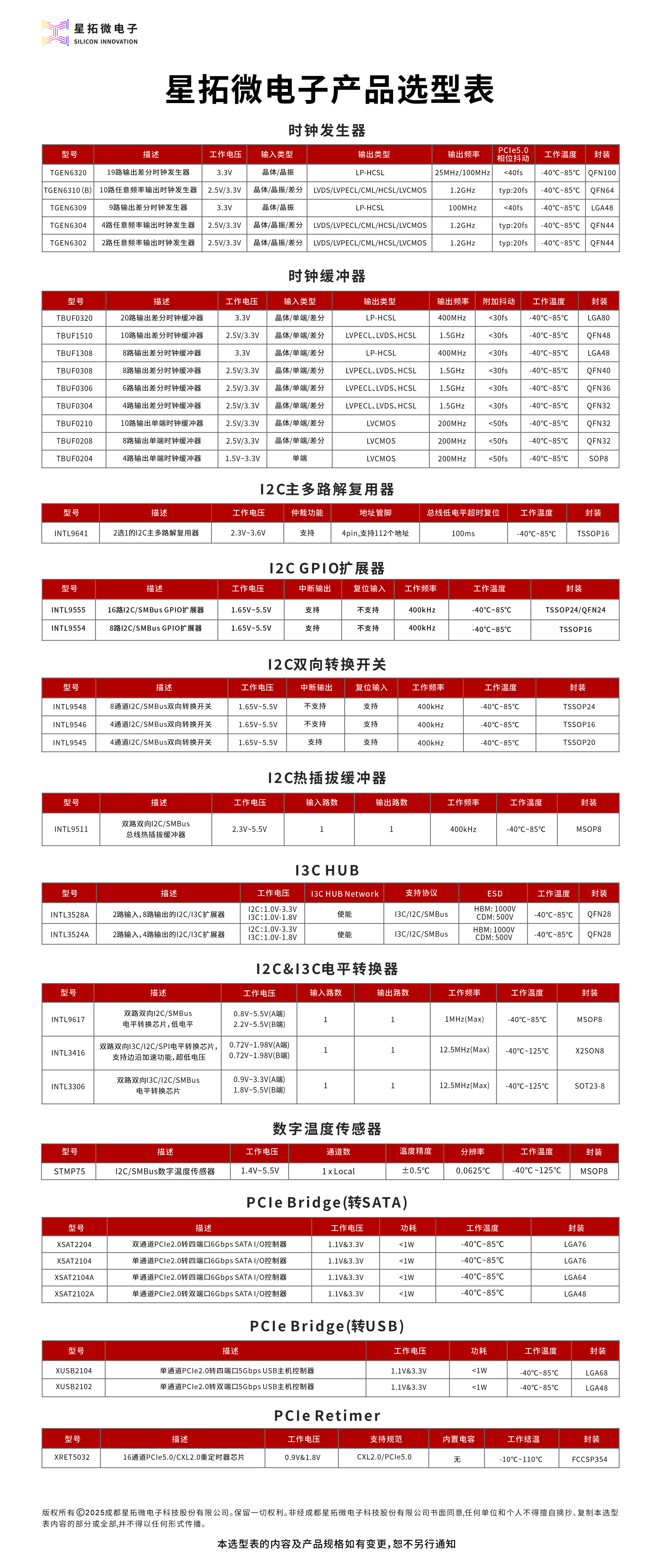 TBUF0304 2.5V/3.3V 晶体/单端/差分 LVPECL、LVDS、HCSL 1.5GHz <30fs 4 -40℃~85℃ QFN32